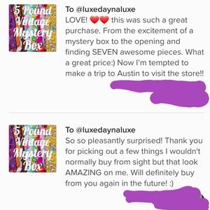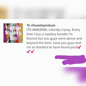 @shoplocal1 Pieces will be in great/pre-loved condition but will not be holey or torn or anything like that. That's the rescue box. This box and the higher lingerie box both have great items, you can see a couple examples of the lingerie I already have posted or sold. These boxes are back stock from our brick and mortar or unphotographed pieces. The lower end boxes have less items, the higher end have more items or more valueable/unique items.