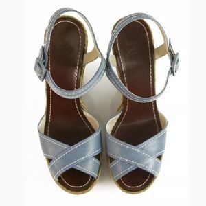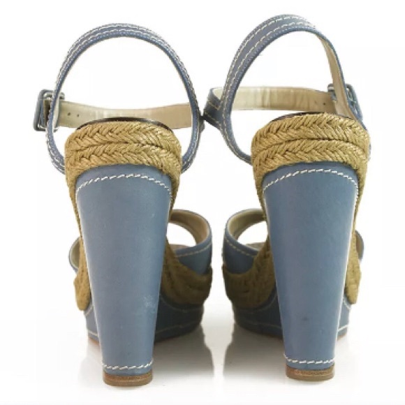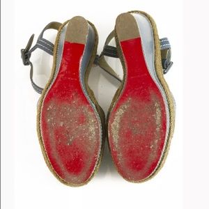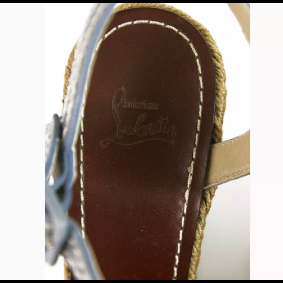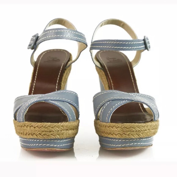 Christian Louboutin Blue leather Jute Platform Wedges Slingback Anckle Strap 39
