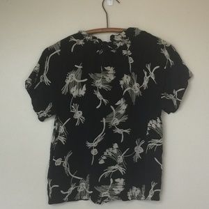 JOIE Black & Tan 'Edita' Abstract Silk Blouse XS