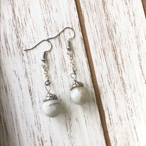 I designed and made these natural stone earrings featuring 10mm Amazonite and silver nickel free ear wires. Measure approximately 1 3/4” long.