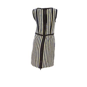Gucci Runway Black, Blue and Yellow Graphic Print Dress in a Size IT40 US4. This dress is brand new and has never been worn. It can be dressed down or up with the shoes you wear. The material is silk. It has lined pockets on the front of the dress.