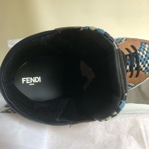 Brand new FENDI high top sneakers on multicolor woven pattern with brown, beige and black accents that makes them one of a kind! Exclusively sold at Saks 5th Avenue (currently sold out). Never been worn and they come with the original box / original dust bags /extra pair of laces.