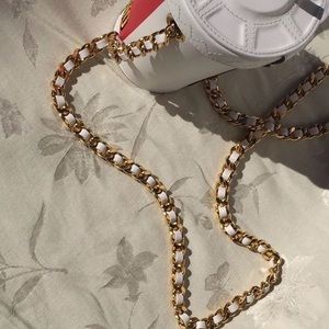 AW/ 14-15 SPECIAL EDITION, SUPER LIMITED Milkshake shoulder bag in calfskin - Metal chain and leather shoulder strap - Flip top closure - Embroidered front panel - Made in Italy - 17 x 13,5 cm/ 6.7 x 5.3 inches
