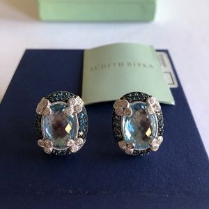 JUDITH RIPKA STERLING SILVER 15.00 cttw BLUE TOPAZ MONACO EARRINGS OMEGA BACKS