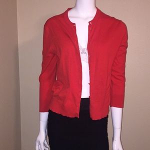 J Crew, women cardigan size M, buttons front closure, ribbed cuffs and trim, super soft and quality fabric, preowned in good condition, beautiful coral color.
