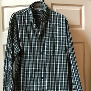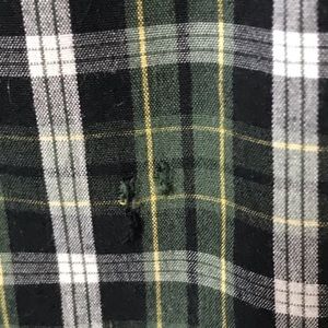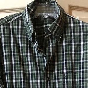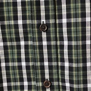 Long sleeves - button down collar - 2 button cuff - breast pocket - small hole on backside bottom as shown in last pic. Colors are green, black, white and yellow