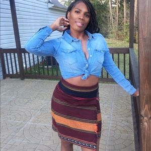 90's burgundy stripe skirt with fringe detail.