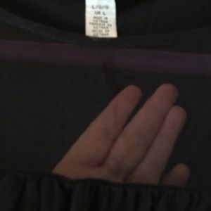 Super comfortable short sleeved black top with mesh panel near the neckline. Solid back. So soft, so comfy. Can be worn with almost anything. In excellent condition. All items come from a smoke and pet free home.