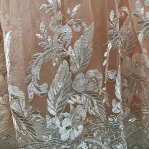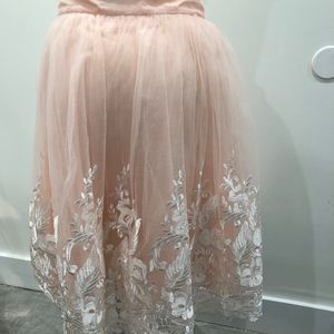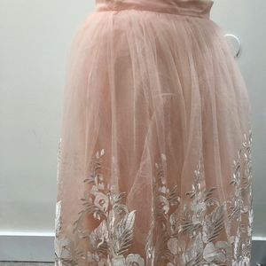 Pale pink baroque inspired metallic embroidery detailing with tulle underskirt