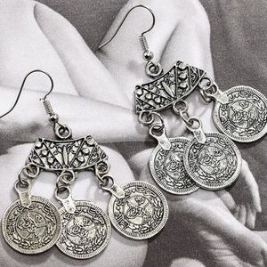 Antiqued Silver Tone Tibetan Coin Dangle Earrings: the perfect boho earring! Lead and nickel free