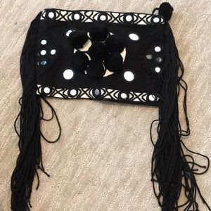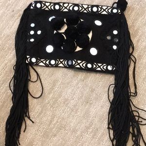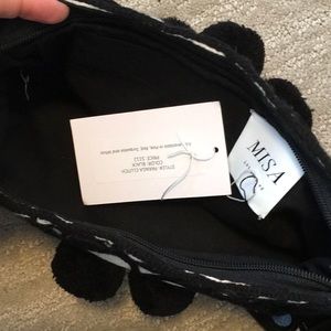 Embellished clutch with pom pom and mirror detail. New with tags!