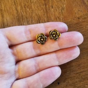 NWOT Gold Bronze Flower Stud Earrings. Adorable. Approx 1.1cm