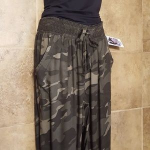 Rewash Camouflage Pants with elastic waist and cinched ankles.