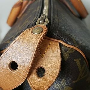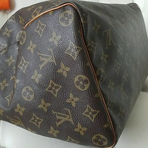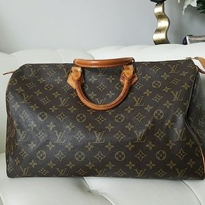 Authentic LV Speedy 40 in good used condition. Flaws are visible as signs of wear. Stains on the chapes, dryness, wrinkling, lines on vachetta, tarnishing on hardware. Piping are intact corners are in good condition. Zipper run smoothly. Zipper pull tag is wiggly. Interior is clean. No unwanted smell (Varies sensitivity)