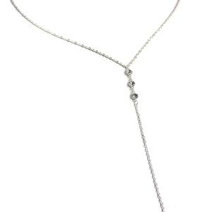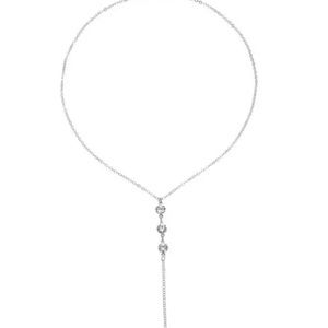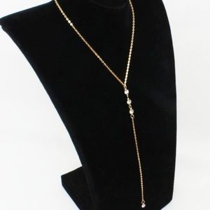 This gorgeous necklace has a simple crystal in the front, and the back hangs down, with 3 clustered crystals that drip down your back, and 1 crystal at the bottom of the chain. Perfect for an open back dress, sweater, or top.