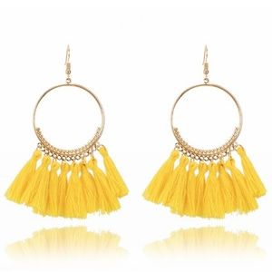 Fun dainty Circle hoops tassels drop earrings.