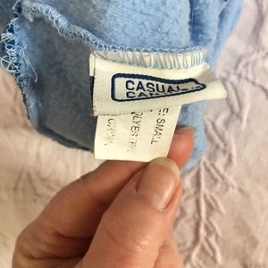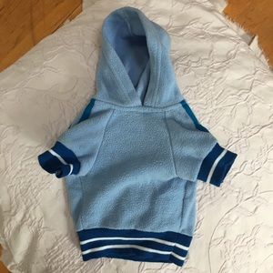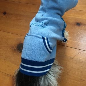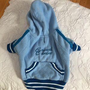 CASUAL CANINE brand - blue fleece Sport Style Hooded Dog Jacket, size small. Fabric is a warm and cozy polyester - easy care machine wash and dry. Condition is Pre-owned with normal wear.