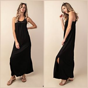 Mesh lace yoke open back maxi dress. This dress is non sheer, lightweight and soft. This dress fits true to size.