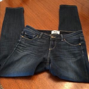 Wonderful jeans, so comfortable and in great used condition, I just need a size smaller in this particular fit. Alanis wash. One area of imperfection as seen in pics. Jeans are not ripped, maybe a snag?