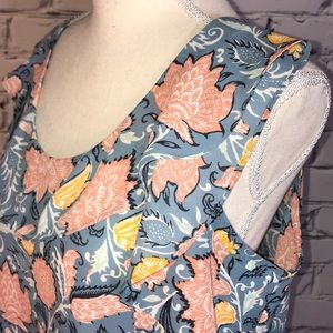 Very pretty floral patterned sleeveless blouse by Ann Taylor LOFT. Ruffled detail around neckline and shoulders. Back has eyelet with single “bra clasp” closure. Excellent condition, like new!