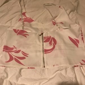 2 piece set spaghetti strap and slacks, there is no stretch, the top has a zip closure from top to bottom and the slacks are pleated, lightweight and requires nine under garments. Super cute to layer under a comfy cardigan or jean jacket, perfect for spring/summer, can easily dress up or down.