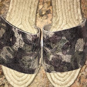J Crew Camo Leather Banded Espadrille Slide Sandal