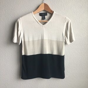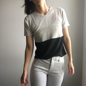 Made of cotton and silk. Great shirt for work. Colors are light gray, medium gray, and black
