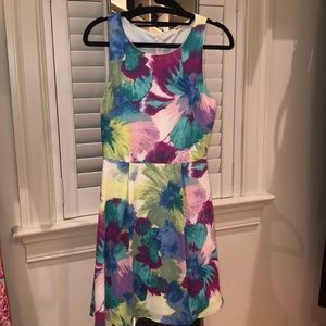 Everly multi colored print fit n flare dress Small Adorable and colorful dress! Zips up in the back. Excellent condition. Size small