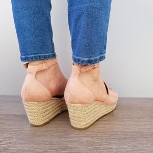 Dusty Rose Suede Espadrille wedge Heel Sandal-E