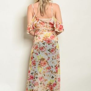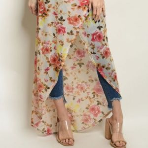 SALE ♡Floral Cold Shoulders Maxi Duster Dress cover up sheer boho fairy flowers
