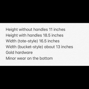 Great to wear as a tote or a bucket bag. Big enough for a water bottle, books, notebooks, wallet, etc. Would not fit a laptop. Comparable to the Lauren Ralph Lauren Dryden Debby drawstring bag and Madewell Drawstring Tote. Some signs of wear on corners as pictured. Classic!