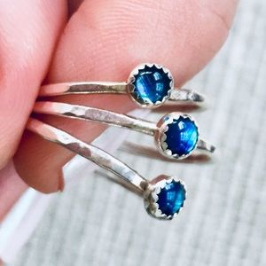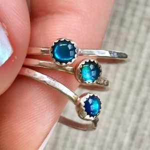 handcrafted sterling silver mini blue abalone ring. genuine blue abalone set on a dainty hammered sterling silver band. beautiful shades of blue that vary slightly from shell to shell (see photos). i can create this ring in any size from 1-16 including quarter, half and whole sizes so if you don’t see your ring size listed, just let me know what size you need! 🌊