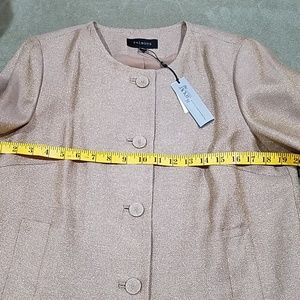 Metallic gold Jackie Fit Jacket. It has 4 center buttons, 2 pockets and cuff sleeves. With relaxed fit, this is a new jacket.
