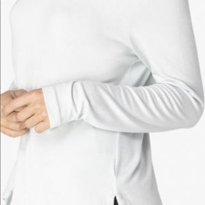 Beyond yoga v-neck long sleeve t in dusty blue. Beyond yoga uses the softest fabric in all their clothes. The pictures look white but it’s a very soft blue