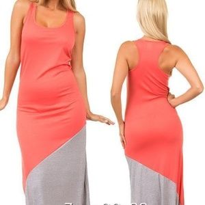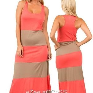 TRENDY maxi dress long stripe color block pattern with racer back sleeve style.