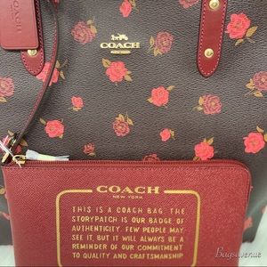 Coach floral reversible tote oxblood cherry pouch