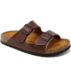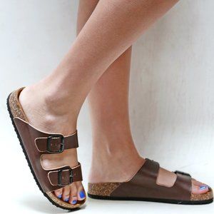 New Brown Band Open Toe Slip On Cork Slide Sandals