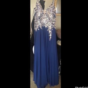 Never been worn navy blue prom dress in great condition. Little long little bit deep in the cleavage area but nothing wrong