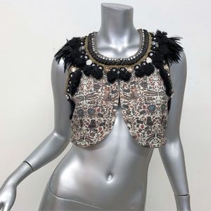 Isabel Marant Vest Jano Feather Crystal Chain Embellished Printed Cotton Size 1, Small -