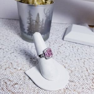 Pink sapphire halo princess Cut stone ring