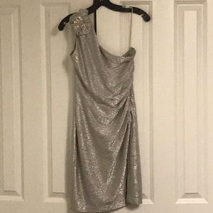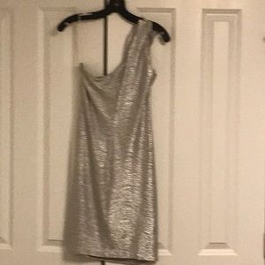 NWT silver cocktail dress. One shoulder with gem embellishments. Fabric is stretchy and perfect for dancing!