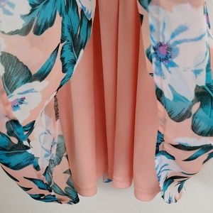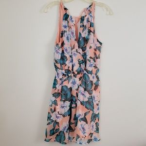 Papaya Summer Peach, Blue, Cream, Pink Floral Print Halter Dress L