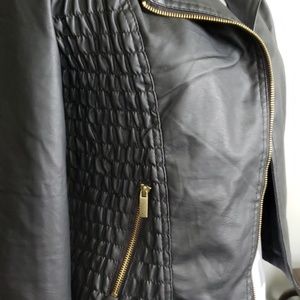 Sharp , short jacket, off side zipper pockets zip. Stretch side panels.