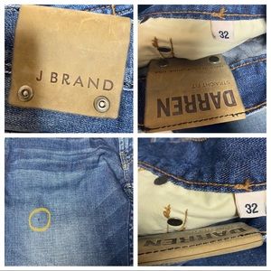 Nothing is sexier than a man rocking a pair of J Brand jeans. Straight from the warehouse J Brand Jeans straight fit in defiant blue. Pant leg has hem/seam that can be worn rolled or cuffed (see pics). There is a small darker spot on top of right leg (see pic)