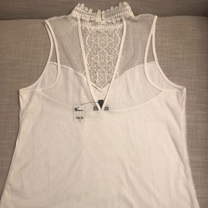 Everyday elegance made easy. The romantic lace yoke and lovely flowing shape make this tank classically beautiful, whether you pair it with jeans, dress pants or a pencil skirt. Luxe, silky-smooth lining completes the design.
