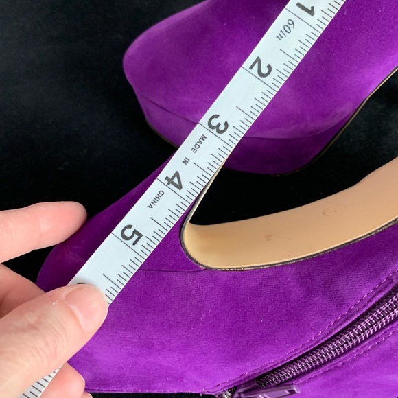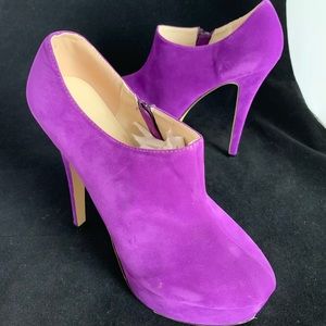 NEW gorgeous purple faux suede 2” platform front, 5” spiked heel, zipper booties. Super cute and sexy. New and in excellent condition, comes with individual dust covers.