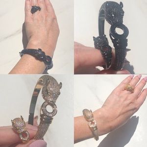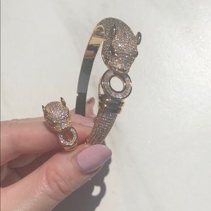 New! Panther Crystal Bangle Bracelet & Ring Set - Gold