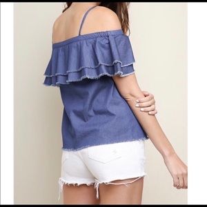 ๐ฅณHP๐ฅณ ONE LEFTโ๏ธCold Shoulder Ruffle Chambray Top