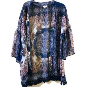Cute sheer kimono / cardigan . Very colorful and can be worn over versatile outfits. Size medium to large, good condition .