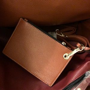 Brand new with tags Bass leather 3 in 1 handbag. Very roomy perfect for daily use or travel. Beautiful Chester brown and burgundy color. Only selling because too big for me now!